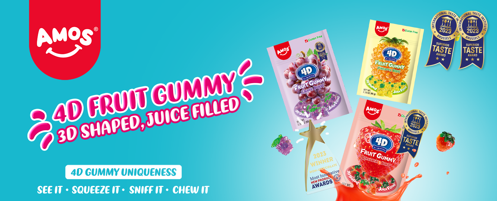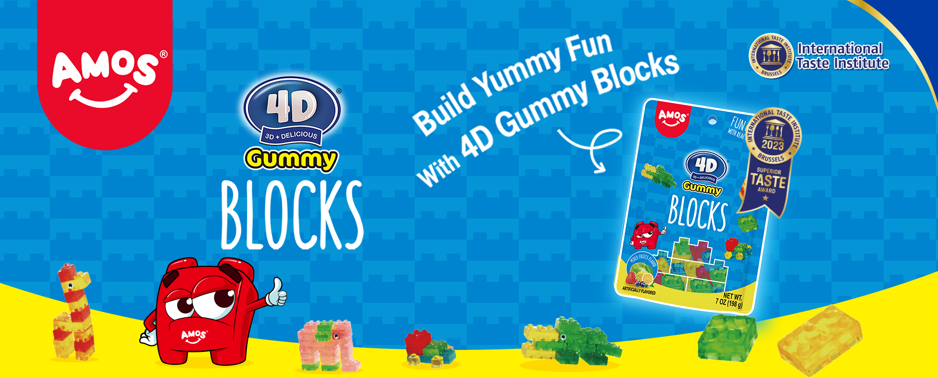 Founded in 1998, the Amos brand belongs to the creative candy brand of Amos Food Group and is the pioneer of 3D gelatin gummies in the world. Amos is committed to building a global leading brand of creative candy, with creative candy, festival candy, gift candy, puzzle candy products, etc. in the United States, Canada, Australia, Europe, Japan, South Korea, Southeast Asia, China and other more than 80 countries and regions, including Wal-Mart, Sam's, Walgreens, DollarGener al, DollaTree, Coles, Costco, Watsons, Ole, 7-11, Family World-class chain supermarkets such as Mart bring sweetness and happiness, family affection and companionship, fun and trendy delicious candy experience to the world.